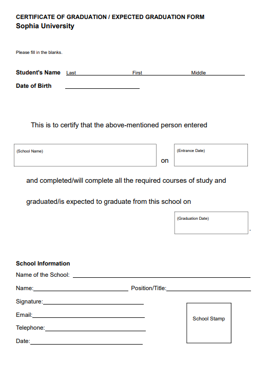 SPSF入学試験に出願するには、高等学校の卒業証明書提出も必要です。本証明書は所定のフォーマットを使用して提出するよう指示があります。