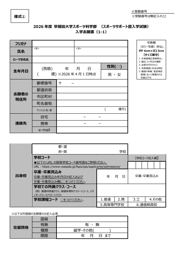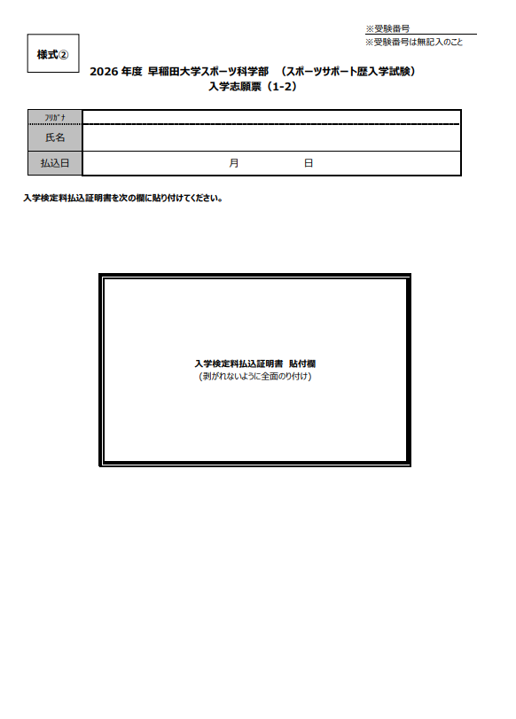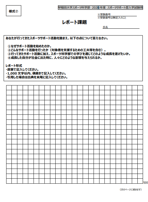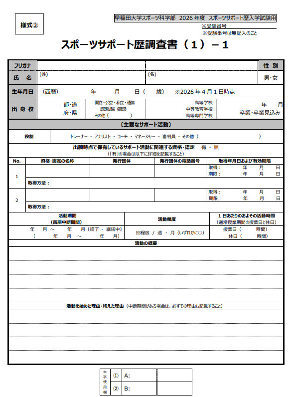 引用:2026年度 早稲田大学スポーツ科学部 スポーツサポート歴入学試験提出書類
