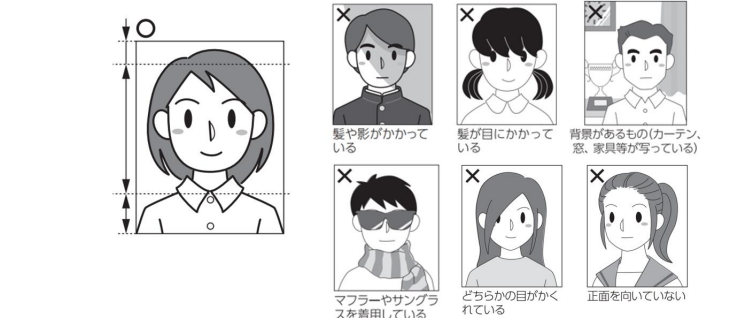 - マフラーやサングラスなどを着用したままで撮影された写真は原則不可