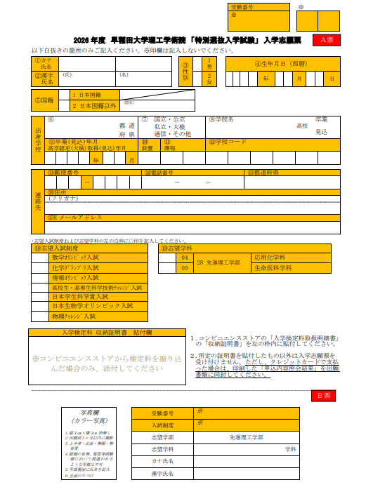 入学志願票は、特別選抜入試の出願に必要な書類の一つです。