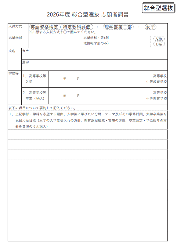 東京理科大学・総合型選抜の出願書類